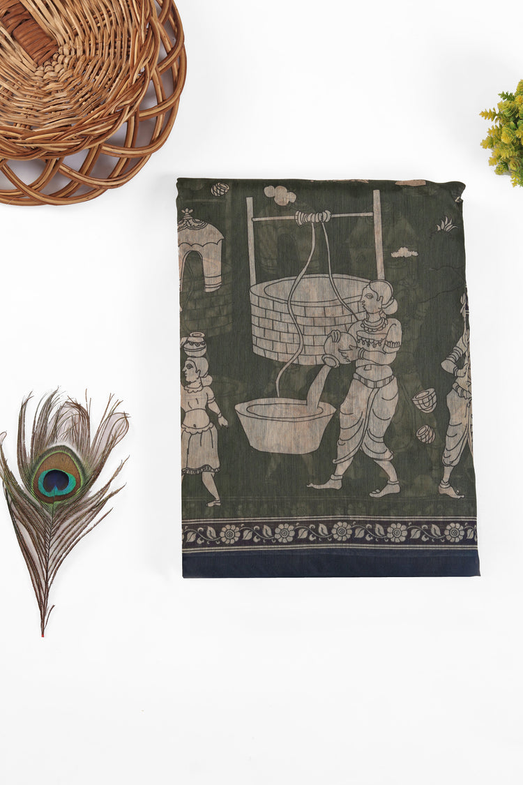 A tribute to India’s hand-drawn legacy, Kalamkari sarees feature ancient motifs, gods, and floral vines — reinterpreted in digital precision across cotton, Chanderi, linen, and silk.