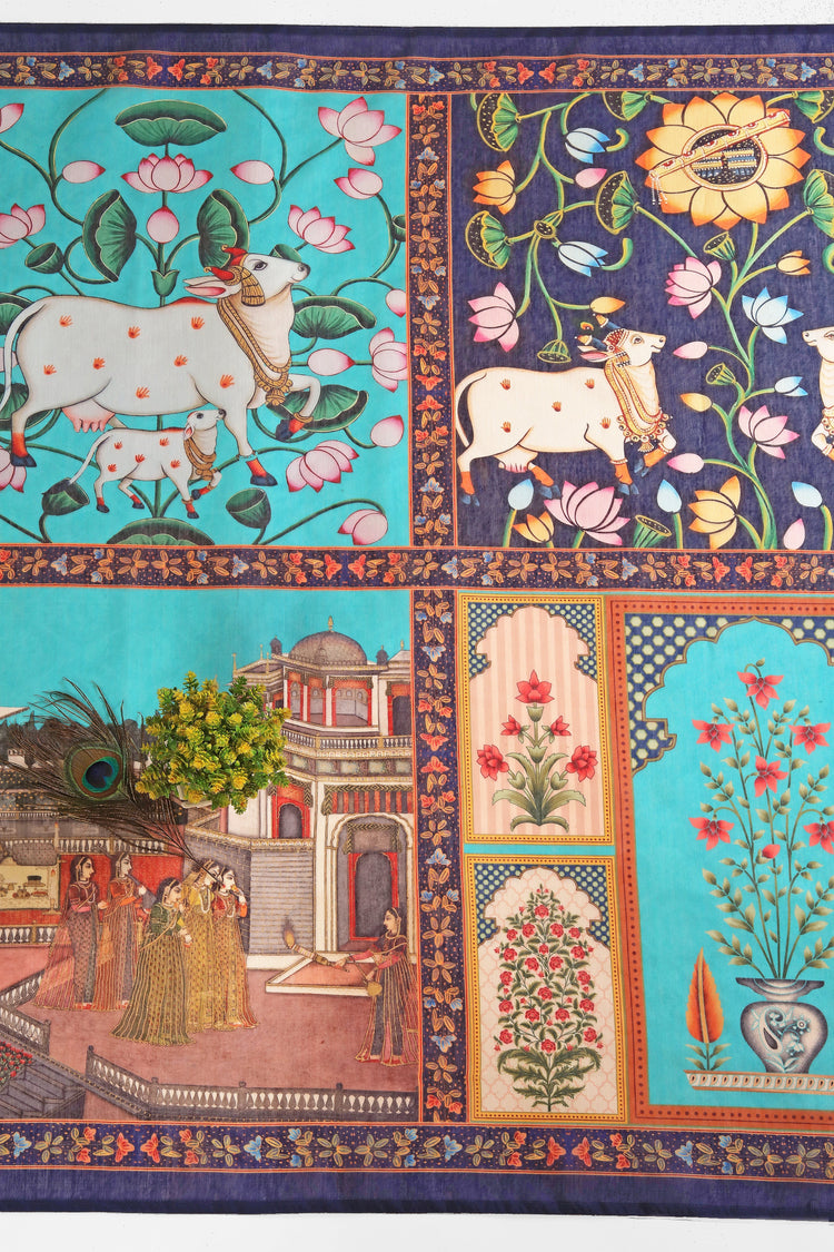 Inspired by sacred Nathdwara art, the Pichwai Collection celebrates Lord Krishna’s world — adorned with cows, lotuses, peacocks, and divine scenes. These prints are rendered across multiple fabrics, merging devotion with wearable art.