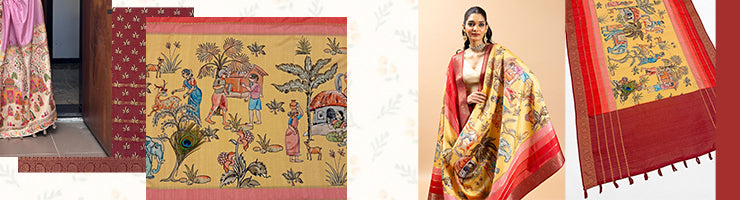 Kalamkari Sarees, Radha Krishna Sarees, Meenakari Sarees, Pichwai Sarees, Bandhani Patola Sarees, Ikat Sarees, Block Print Sarees, Figure Print Sarees, Floral Print Sarees