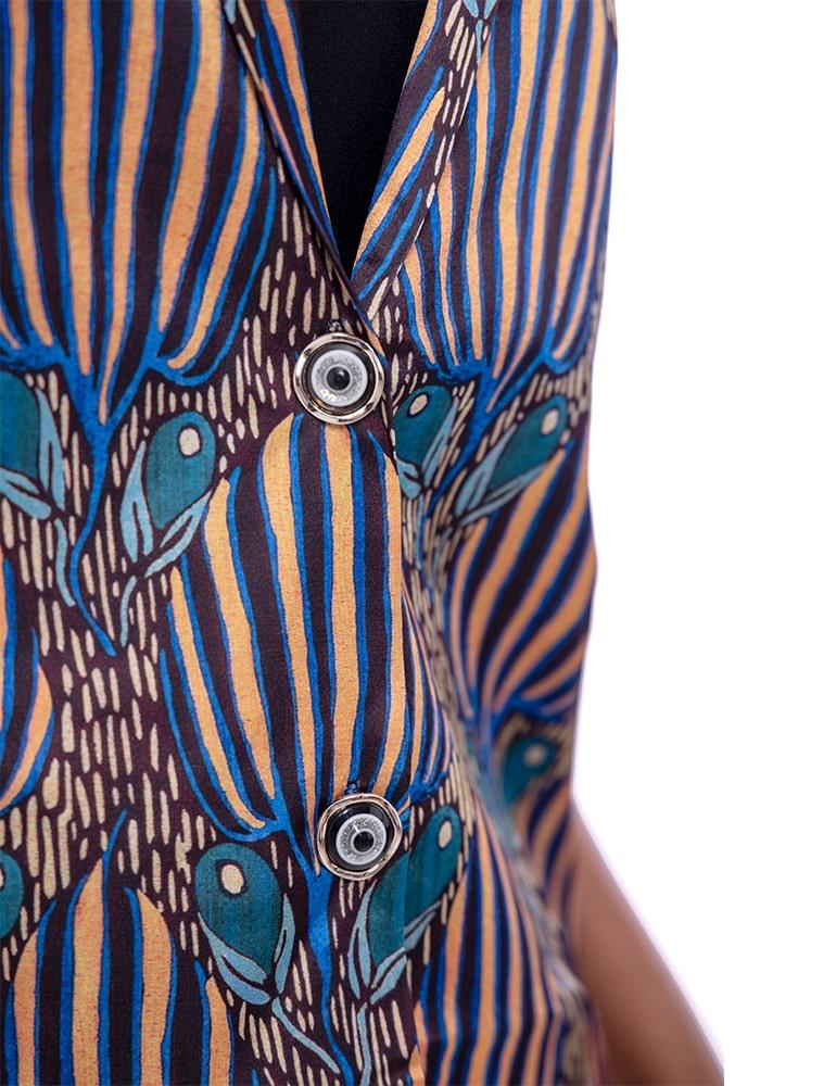 The fabric is very nice soft cotton. The print is also very good and bold. very nice peach colour.