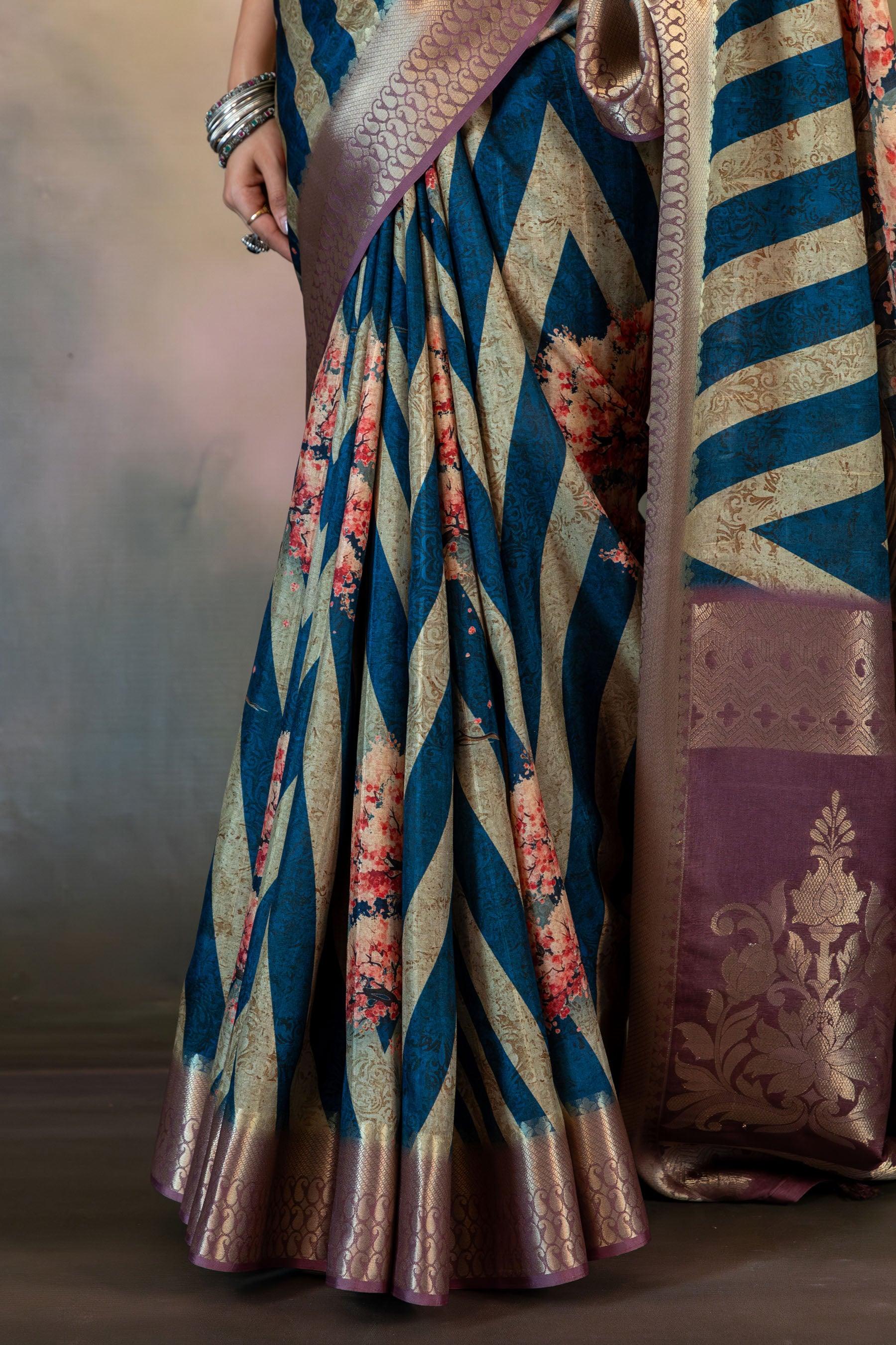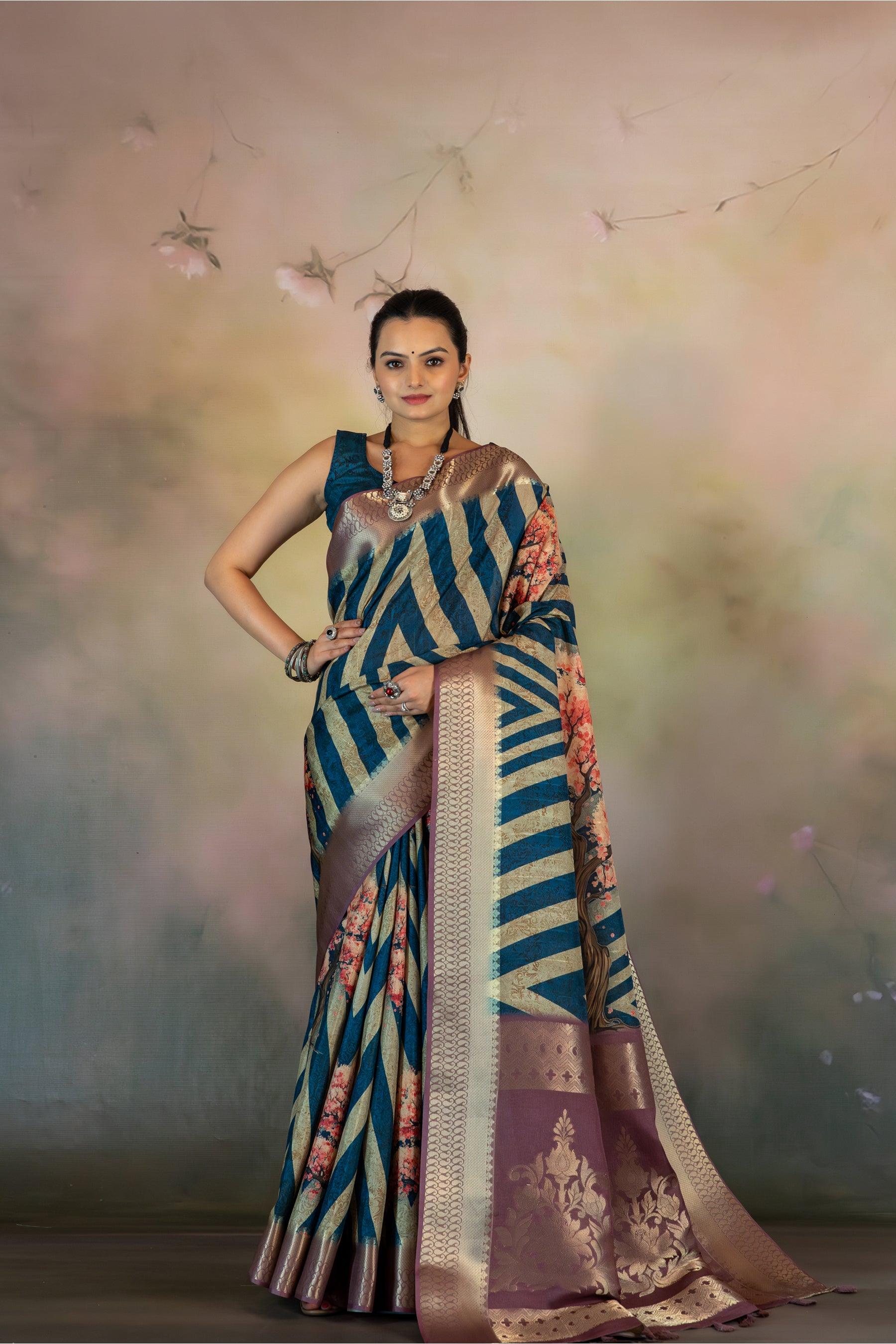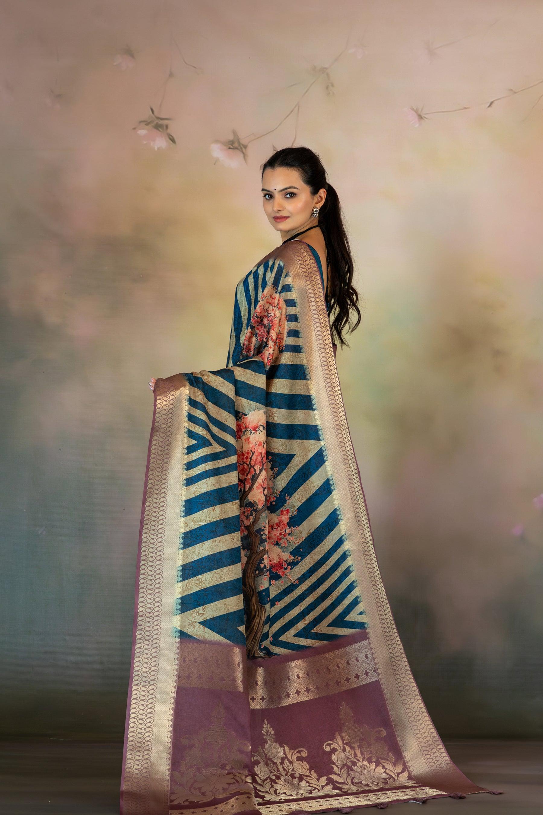 Cherry Blossom Tree Print Jacquard Saree