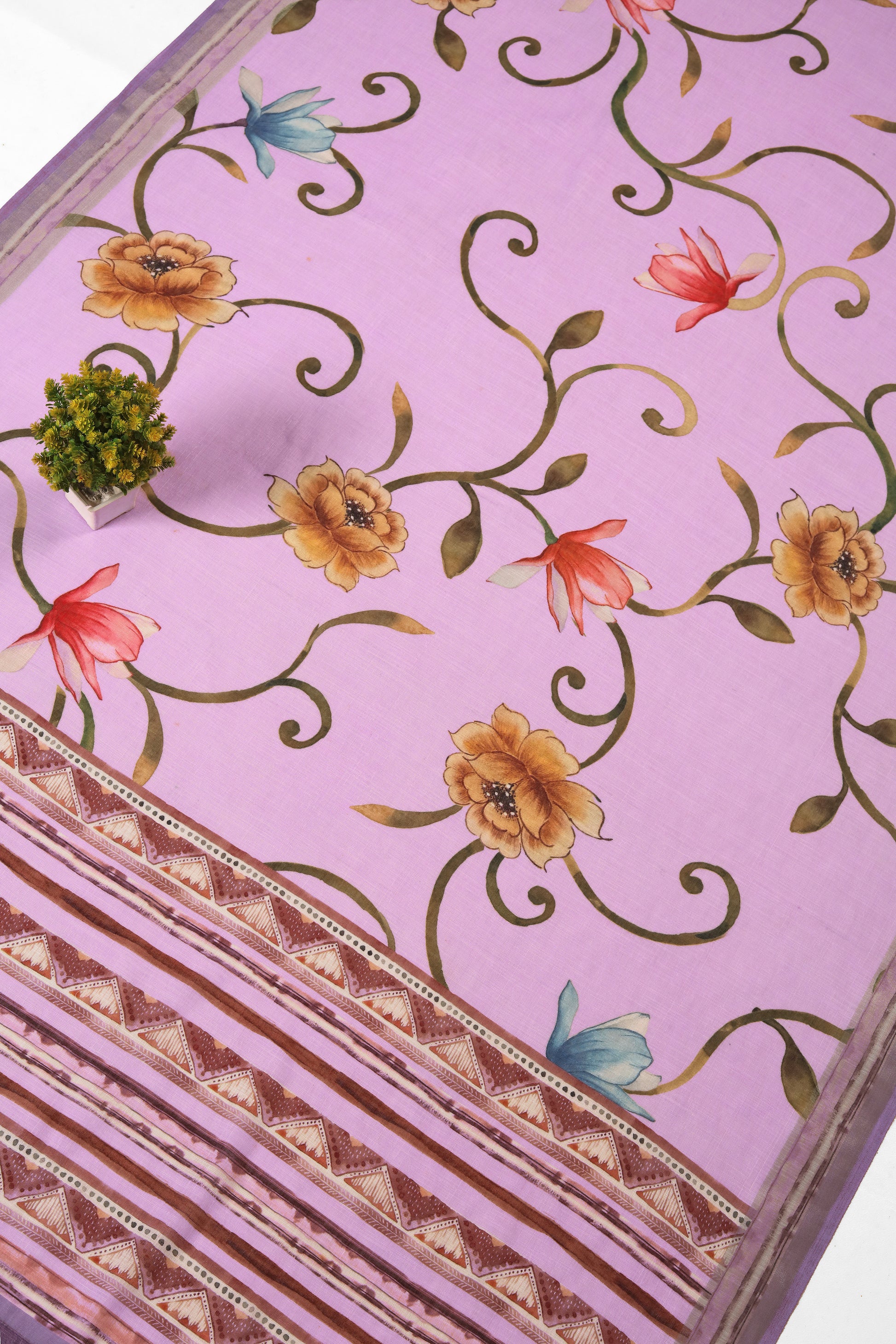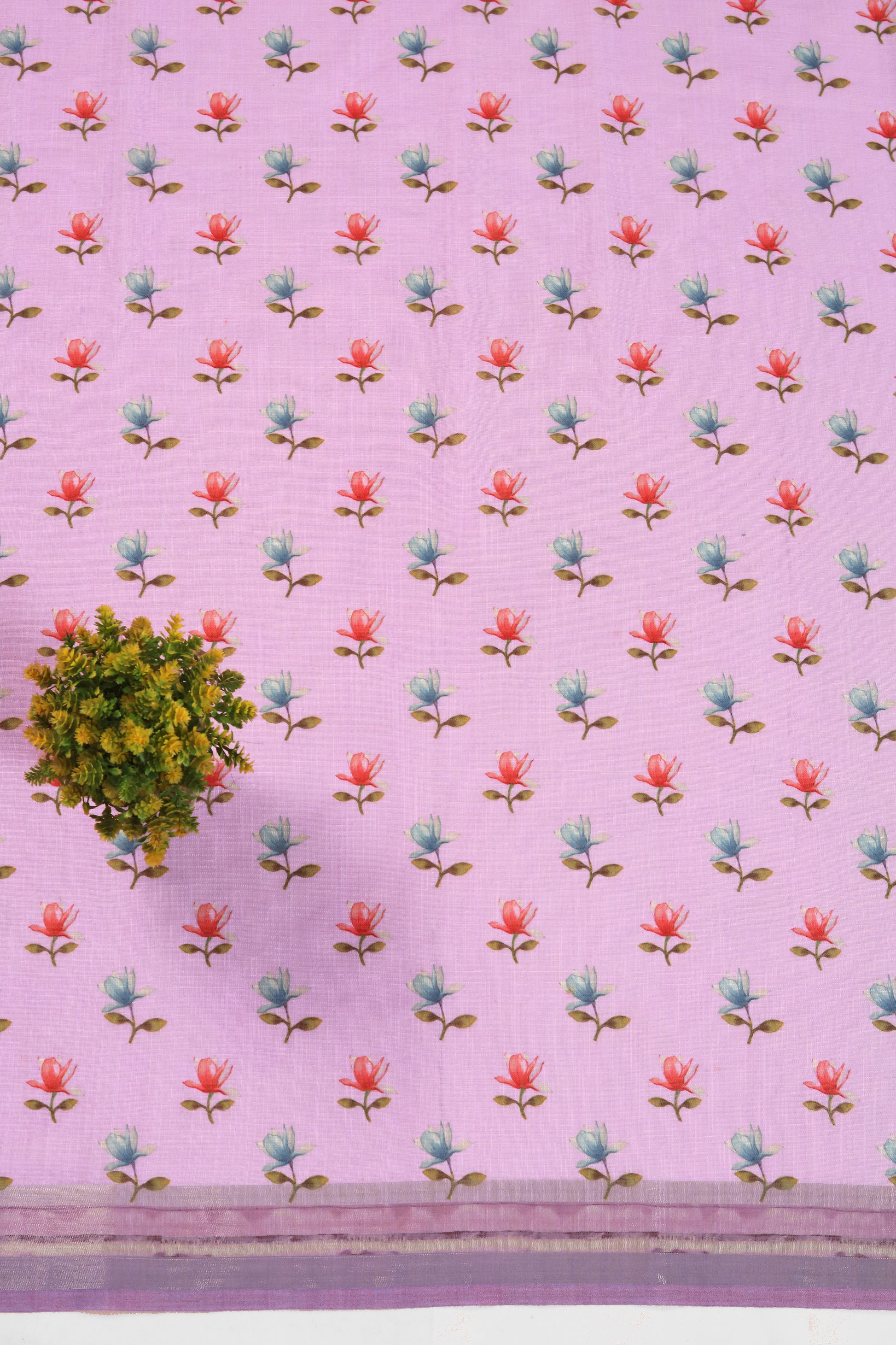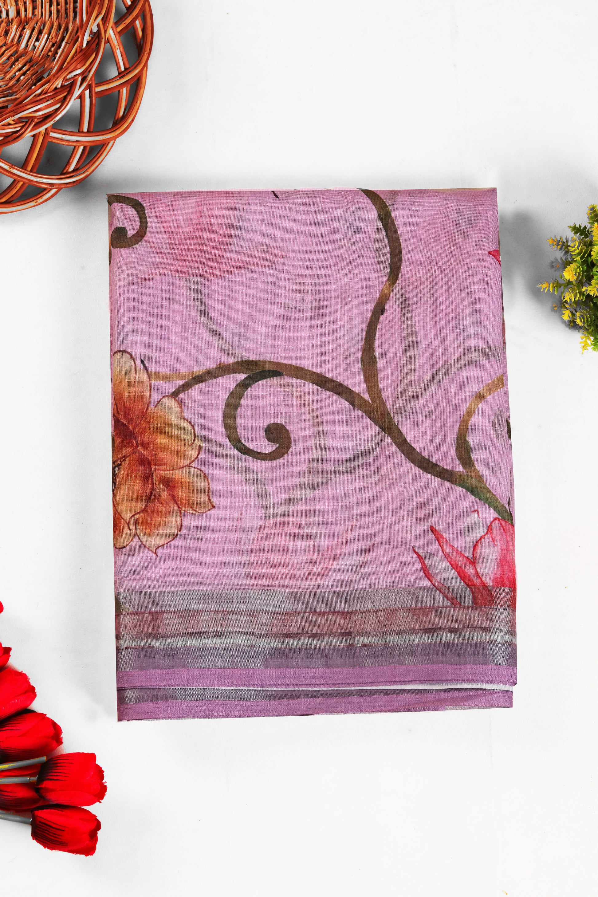 The Gulabi Bahar Linen Saree drapes you in the soft hues of a pink spring bloom, with its delicate pastel floral trails on breathable linen, perfect for a gentle summer feel.