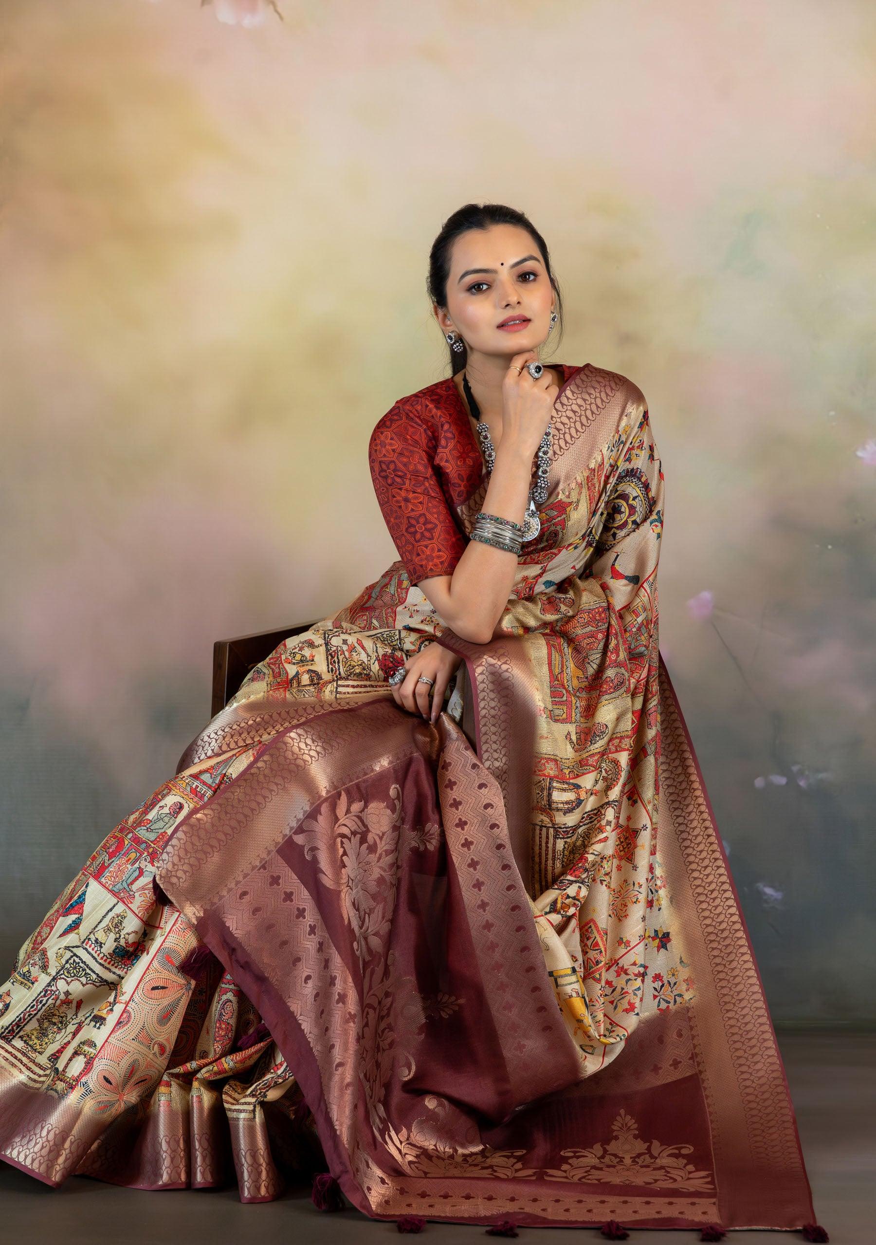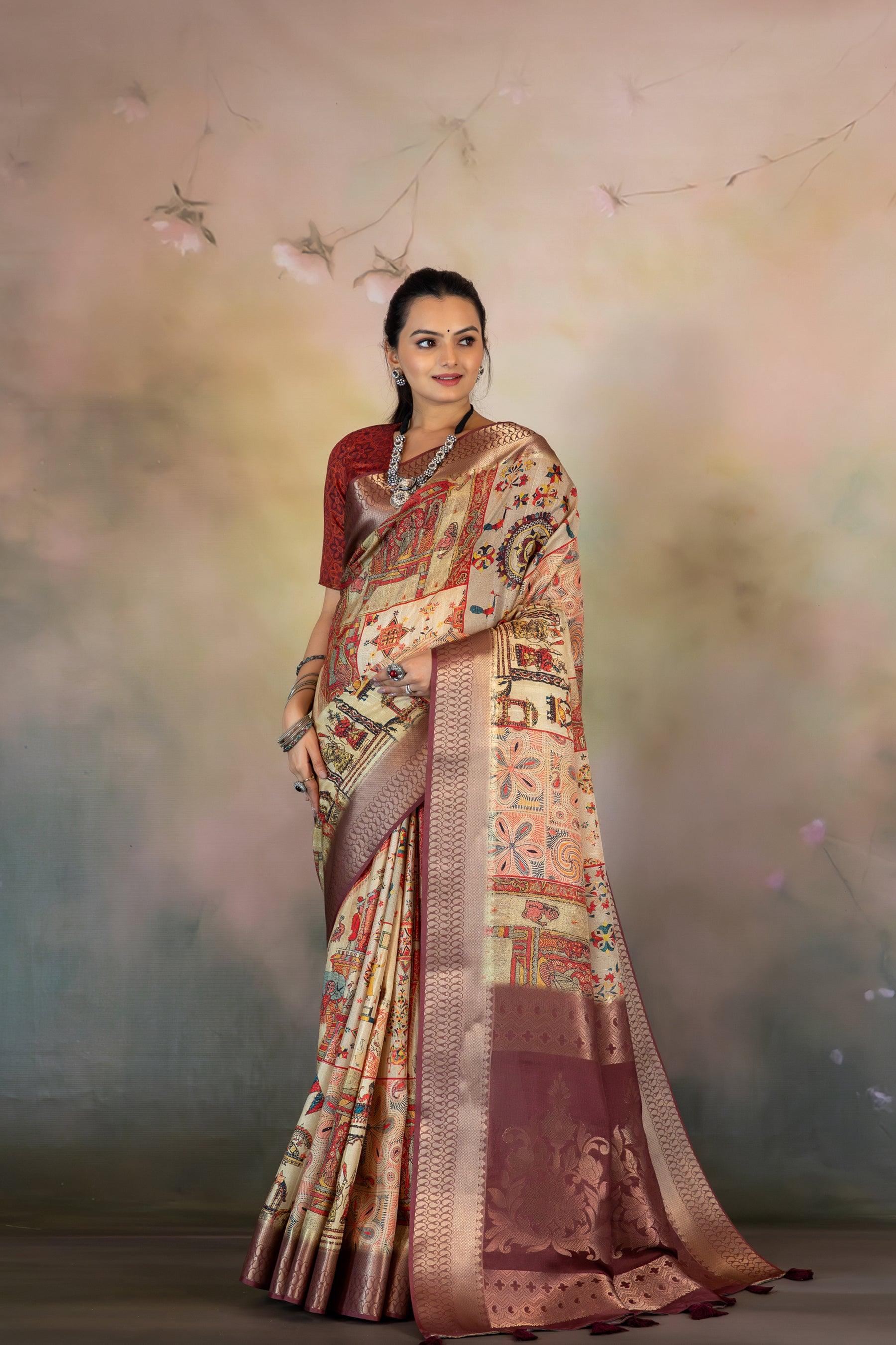 Saree fabric & colour is too good... Vrindavan leela theme based design is a unique one & out put came very well...