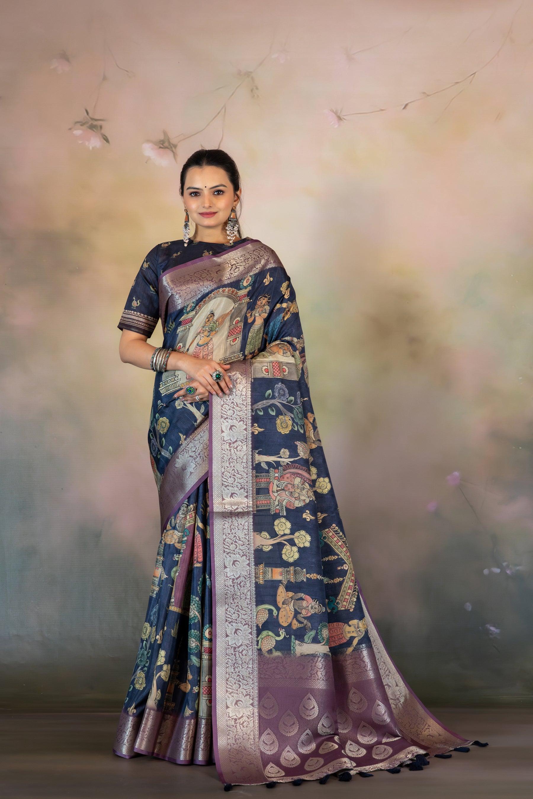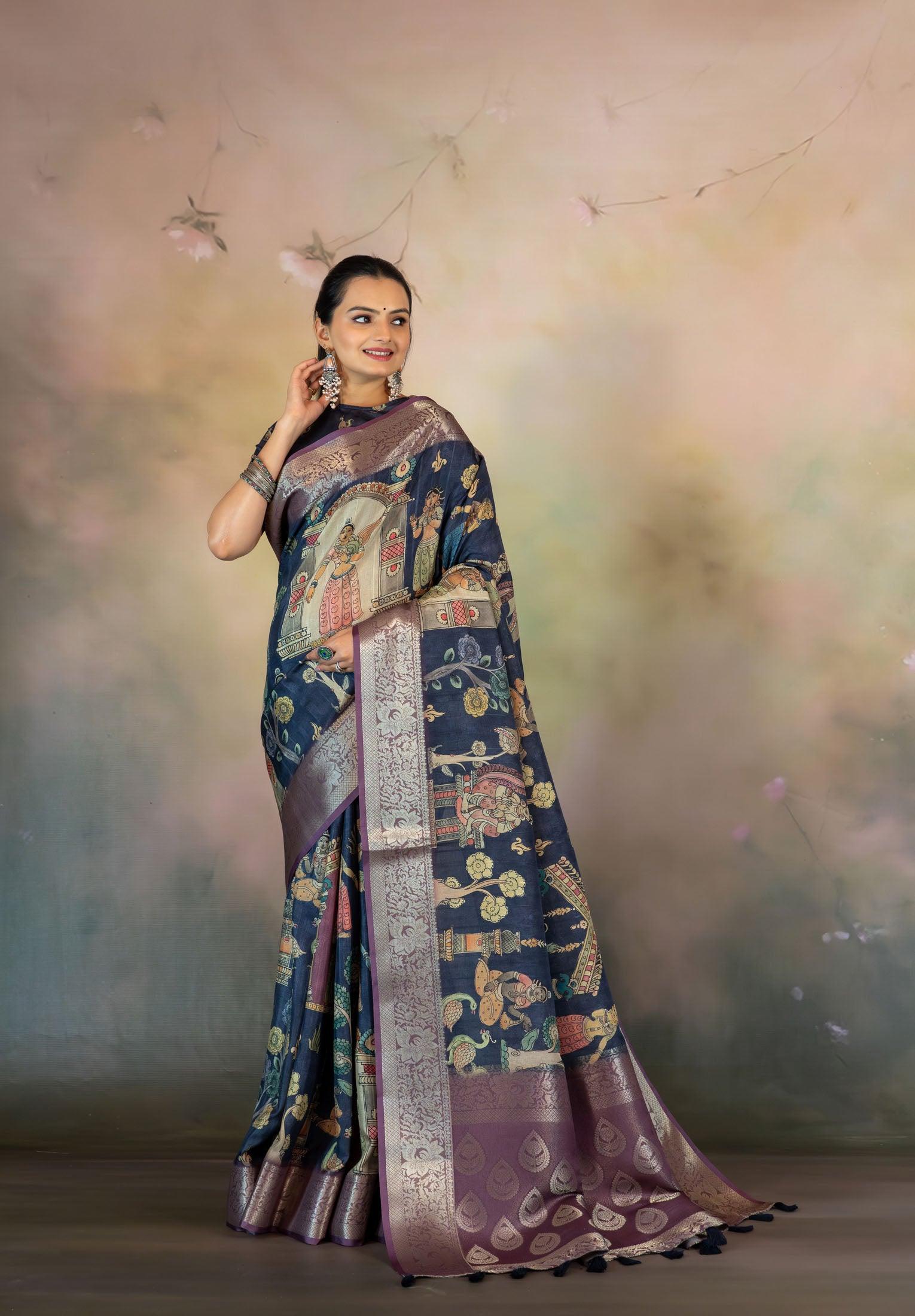 Saree fabric & colour is too good... Vrindavan leela theme based design is a unique one & out put came very well...