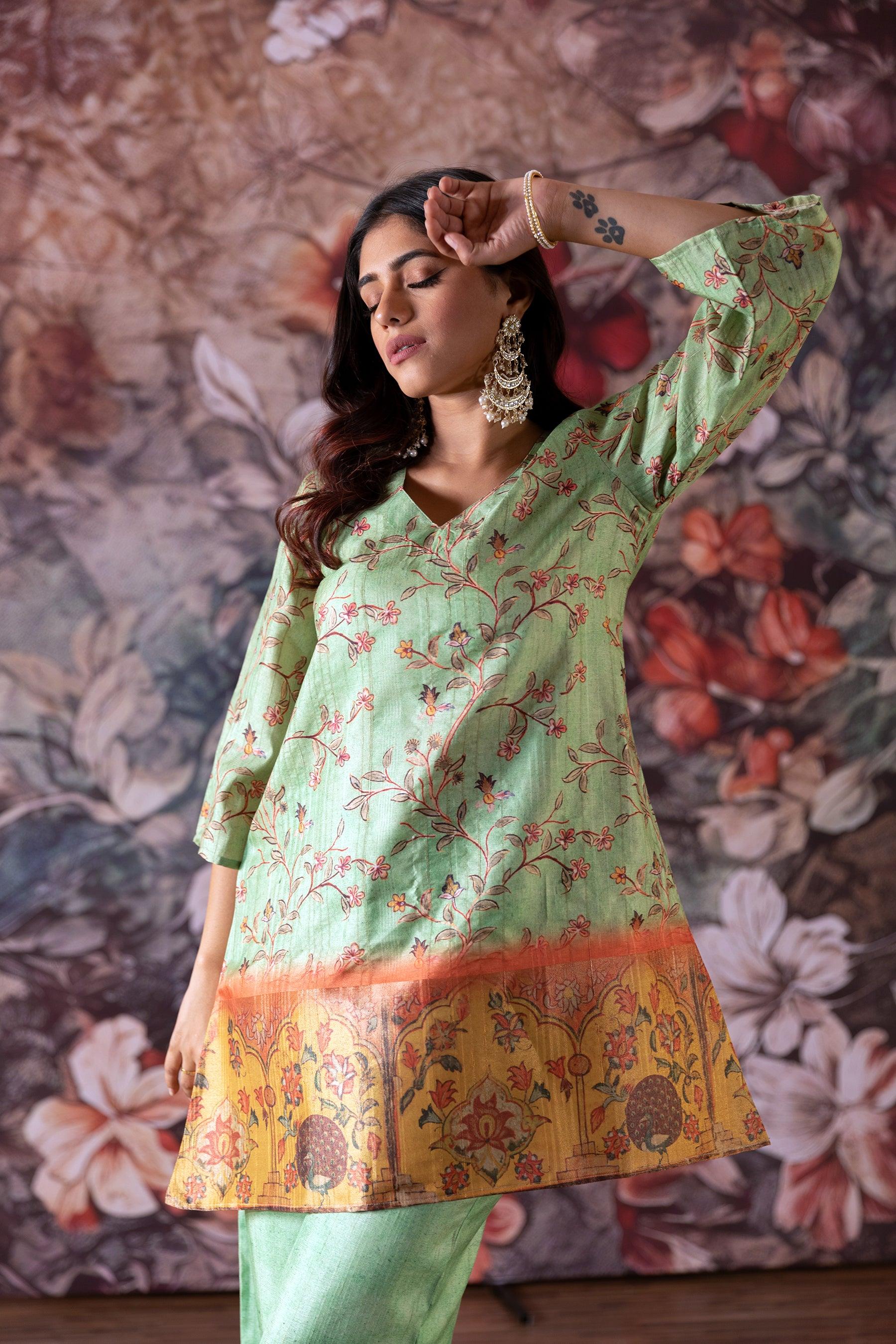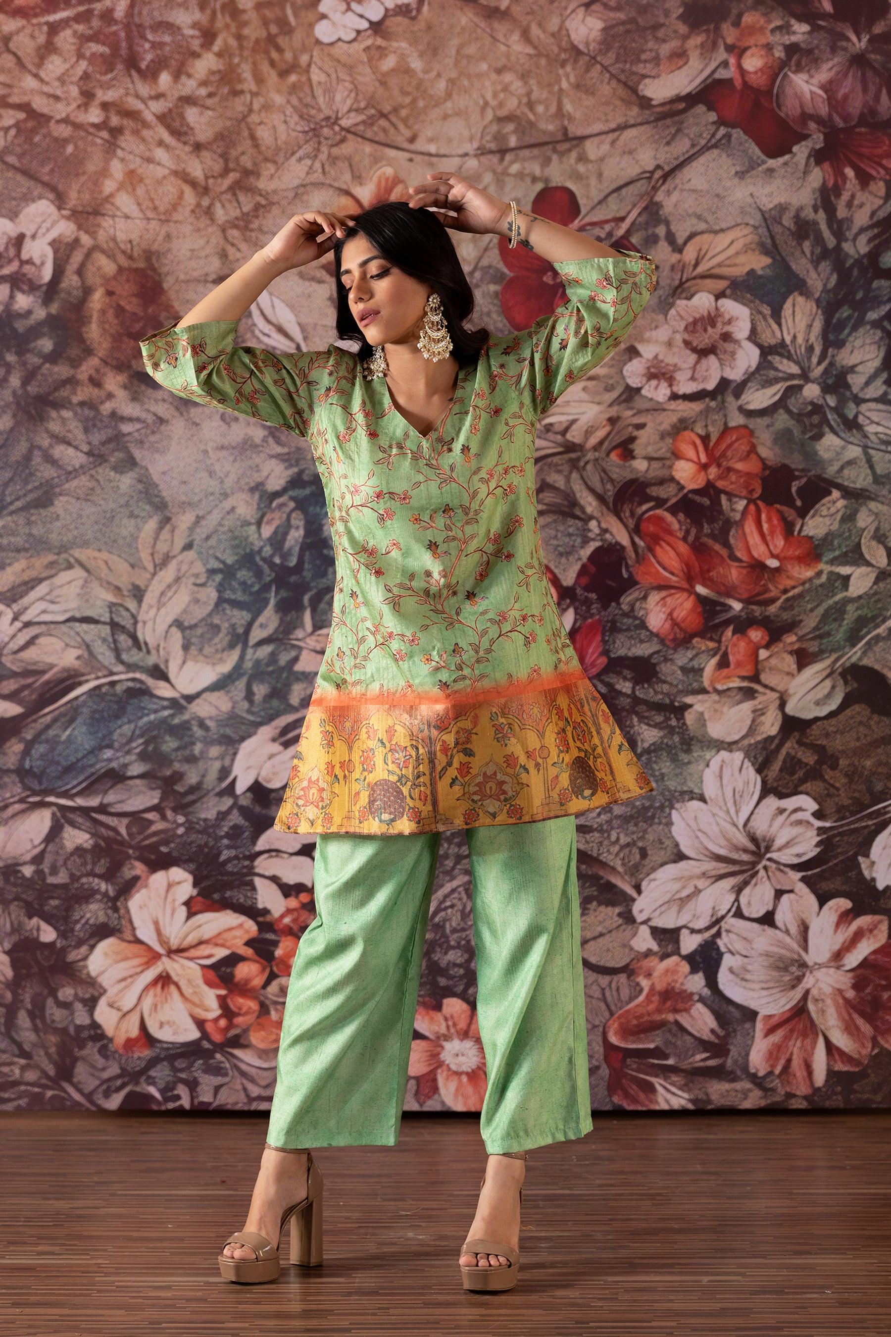 • This semi Indian Co-ord is perfectly paired with matching comfort fit pants.