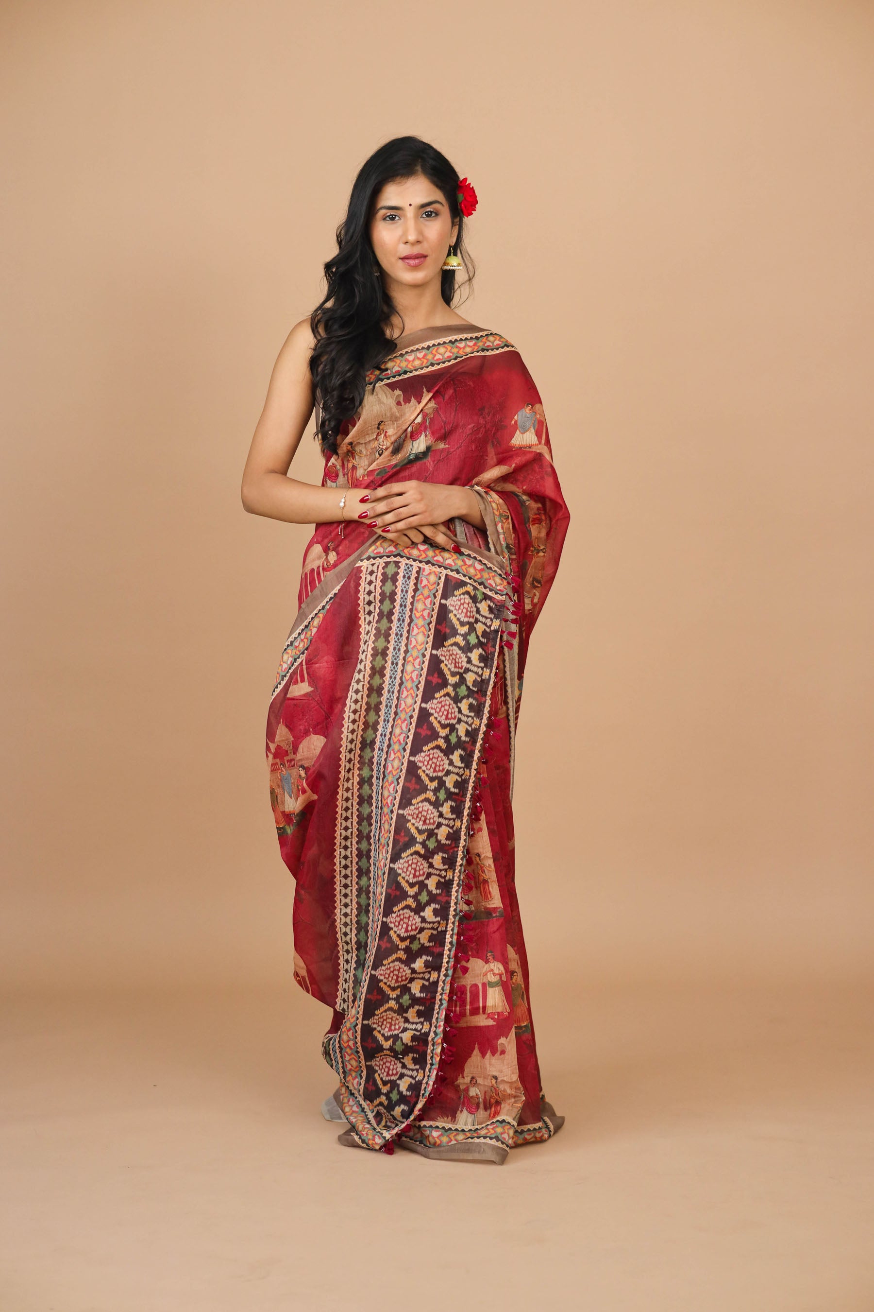 Red Mughal Figure Print Saree