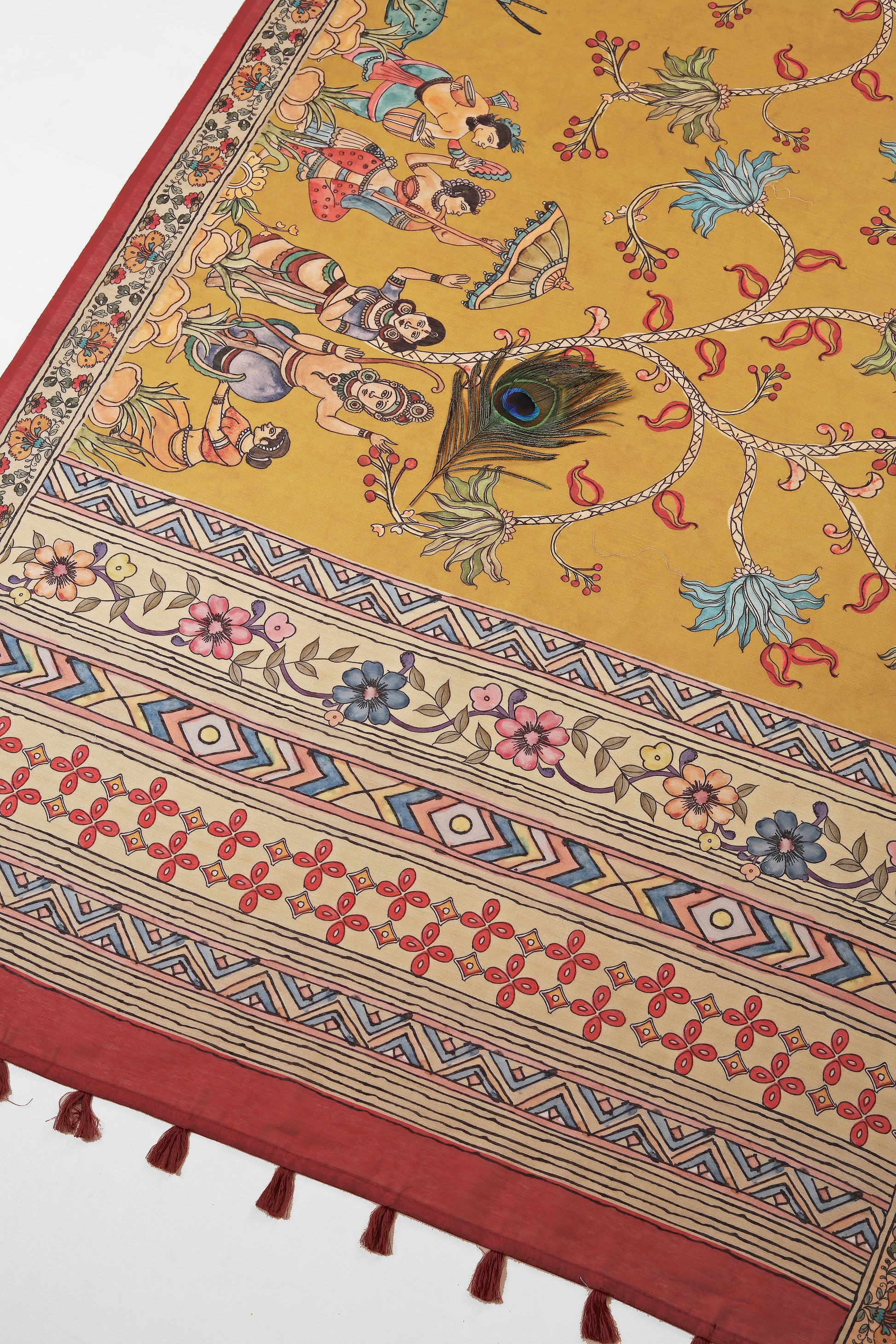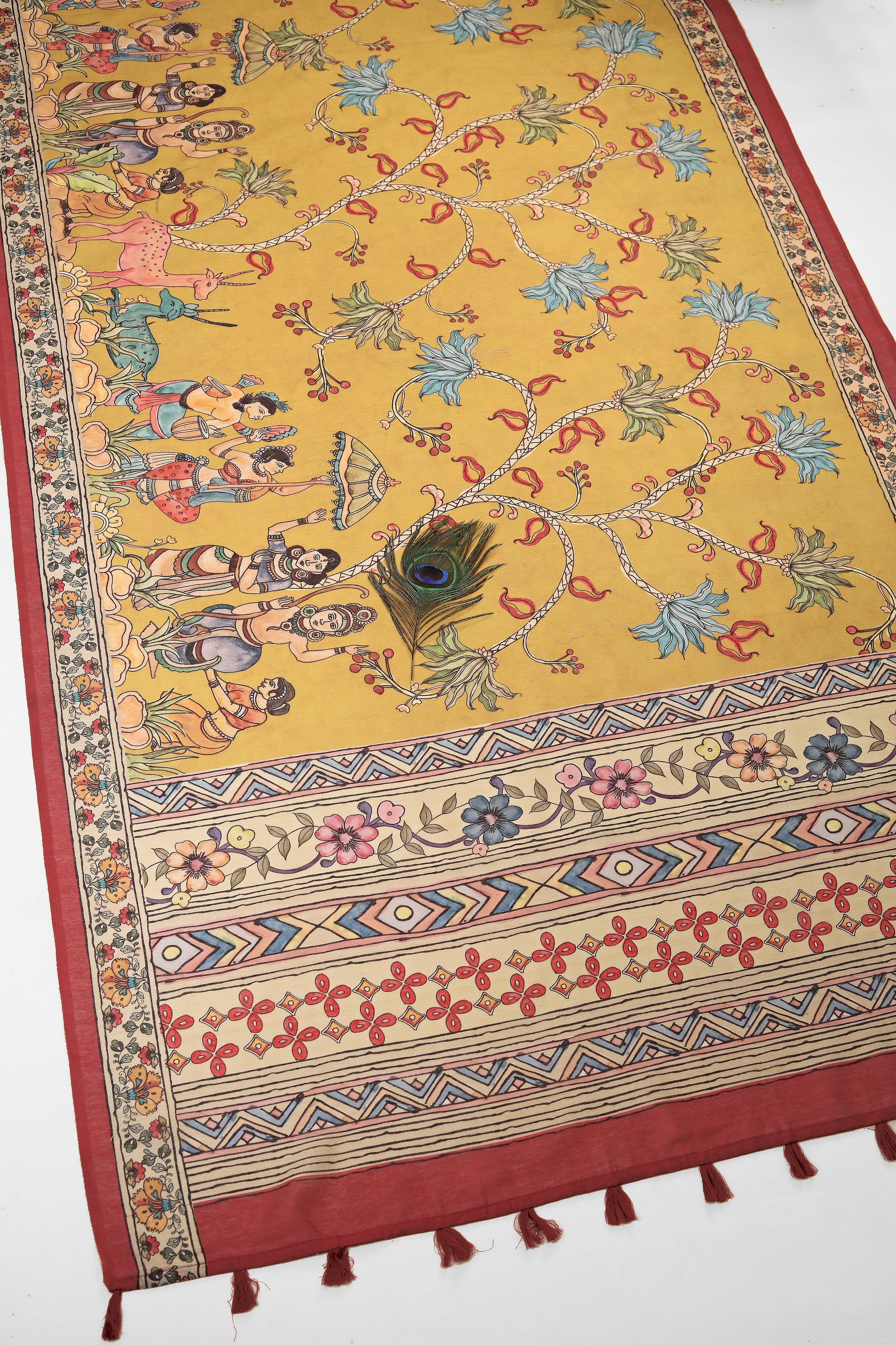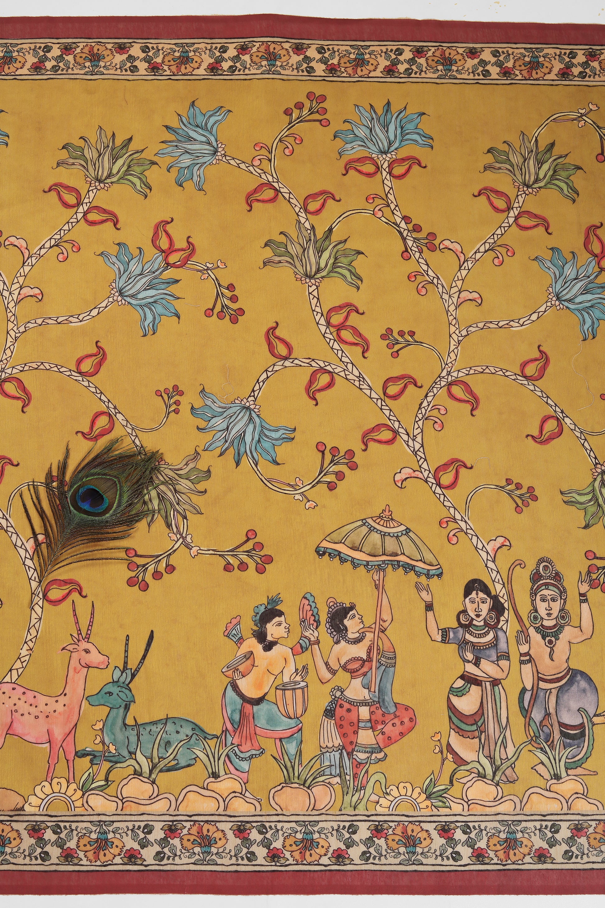 Saree fabric & colour is too good... Vrindavan leela theme based design is a unique one & out put came very well...